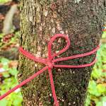 今回の結び方は実に簡単で、ロープを木に回し、引き解け結びで留めるだけ。