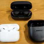ライバル機の通話性能も併せてチェック。アップル「AirPods Pro (第2世代)」は人の声をクリアにする方向性で聞き取りやすさはトップ。騒音は小さく拾い、話者も若干の音質劣化がある程度。BOSE「QC Earbuds II」はマイクが拾う音は軽めですが、騒音に対するノイズキャンセルが優秀で、音質も若干劣化する程度。ソニー「WF-1000XM4」は無音状態でも若干デジタルのような音質劣化があり、騒音下では話者の声にも雑音が入ります。