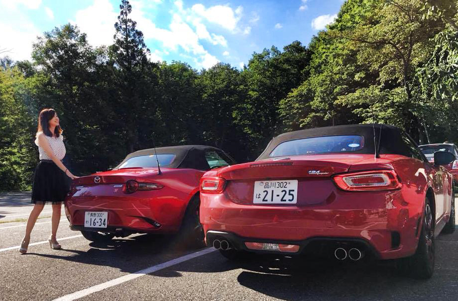 そして、サイズはほぼ同じですが、2台のデザインは大きく異なります。124スパイダーのデザインは、70年代の名車であったオリジンの124スパイダーをオマージュしたもので、アバルトのDNAを継承した、どことなくレトロ感のある懐かしいスタイル。ロードスターと並べると、2台の違いははっきり分かります。