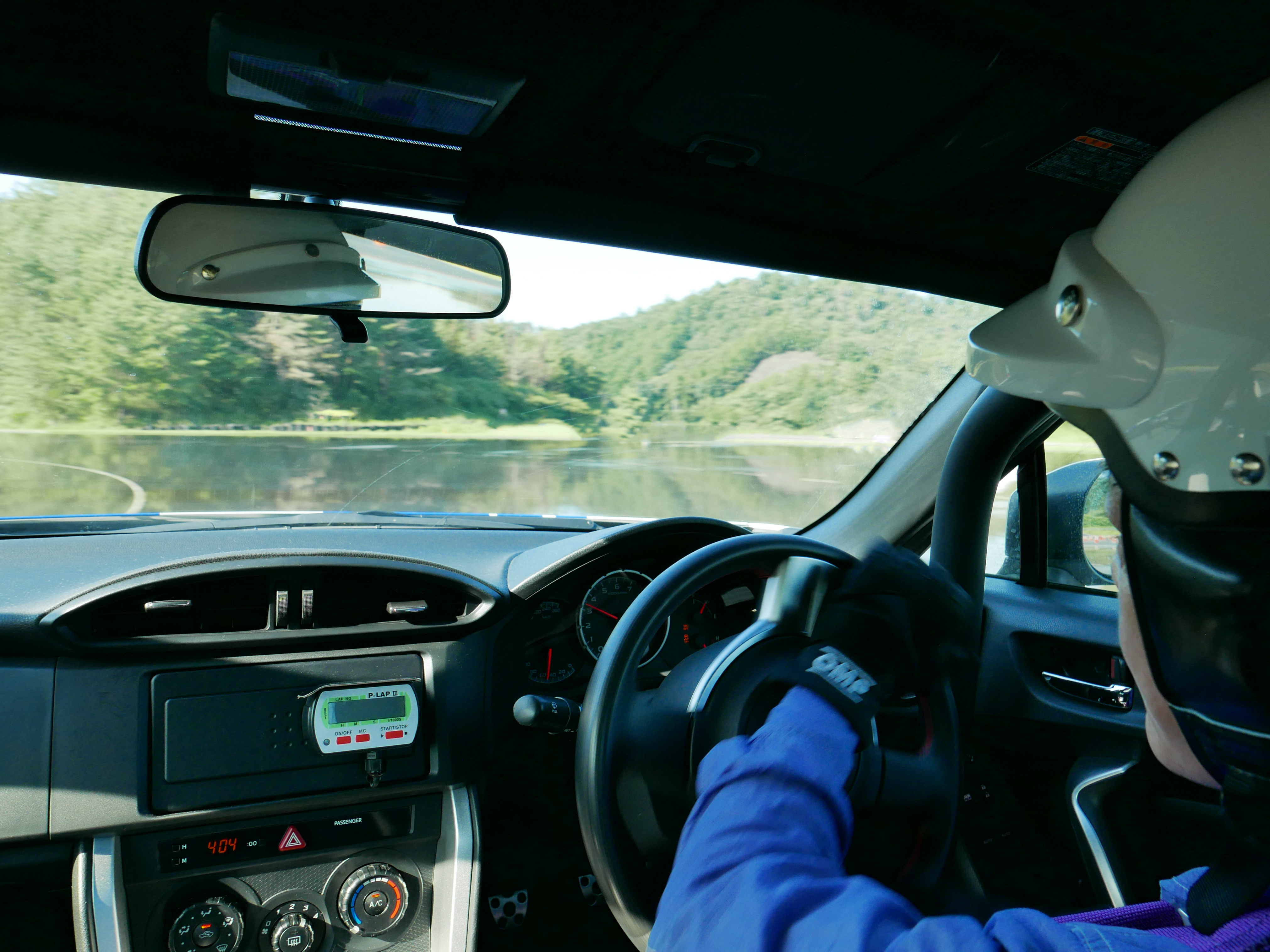 まずは助手席に座っての同乗走行後、1回の完熟走行を実施。ミスコースしそうになってヨロヨロ走るワタシを見かねてか、インストラクターの方が「隣に乗りましょうか?」とありがたい申し出。隣で指示をいただきながらの走行とあいなりました。恥ずかしい…。