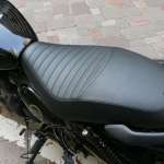ホイール径はフロント19、リア18インチで、ハンドリングもクラシックな設計。キャストホイールのグレードもありますが、個人的にはスポークホイールが似合うと感じます。シートがやや厚めなこともあって、シート高は805mm。ステップ位置は「メテオ350」よりはやや後方になっていますが、それでもやや前方に感じます。