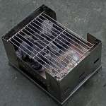 「ポケットストーブ」は左右にフタを開くと五徳に変身します。「チャコールグリル」もそのまんま、左右に開くことでグリルの壁になる!