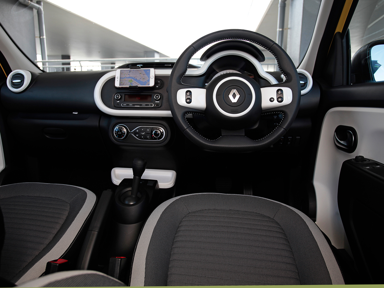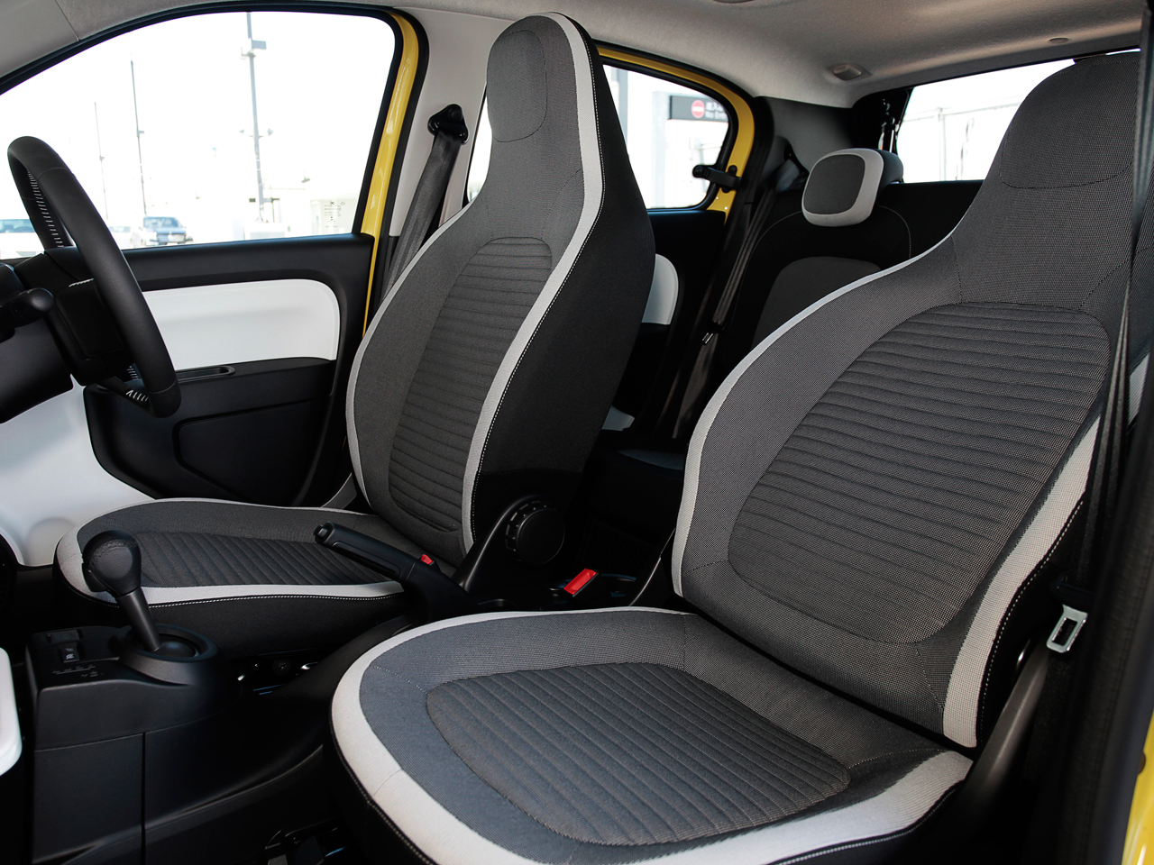では、新しいトゥインゴに乗ってみましょう。新型のフロアは、衝突安全性を向上させるために二重になっており、初めて乗り込む際は「オッ!?」と思うほどフロアが高い。当然、着座位置も高めです。