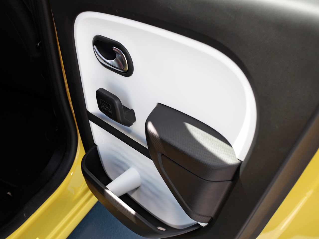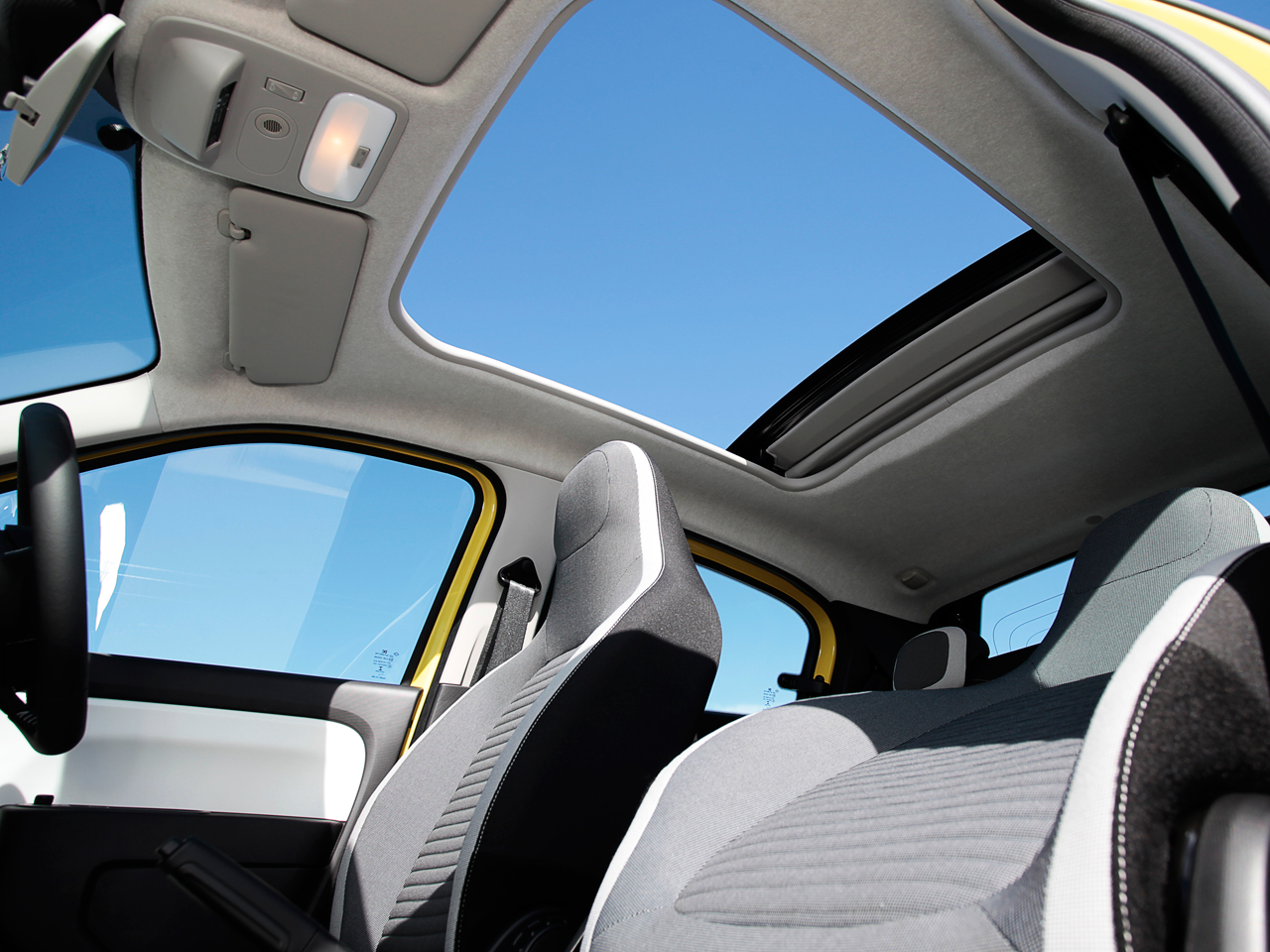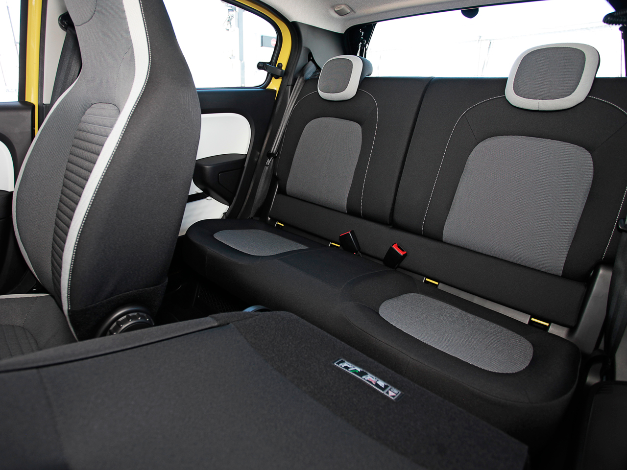 ボディサイズは、全長3620×全幅1665×全高1545mm。フィアット「500」やフォルクスワーゲン「UP!」よりひとまわり近く大きい寸法です。とはいえ、先代トゥインゴよりは80mm短く、一方で、ホイールベースは125mmも長い2490mmになりました。かさ張るエンジンをリアに押し込み、人が乗るキャビンをできるだけ大きく取ったわけです。