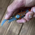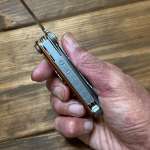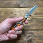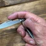 ワンハンドオープンは多少の慣れが必要ですが、片手で何かしながらナイフを開くのに便利。ハンドルの厚みが絶妙な細さなのでワンハンドオープンがやりやすいですね。