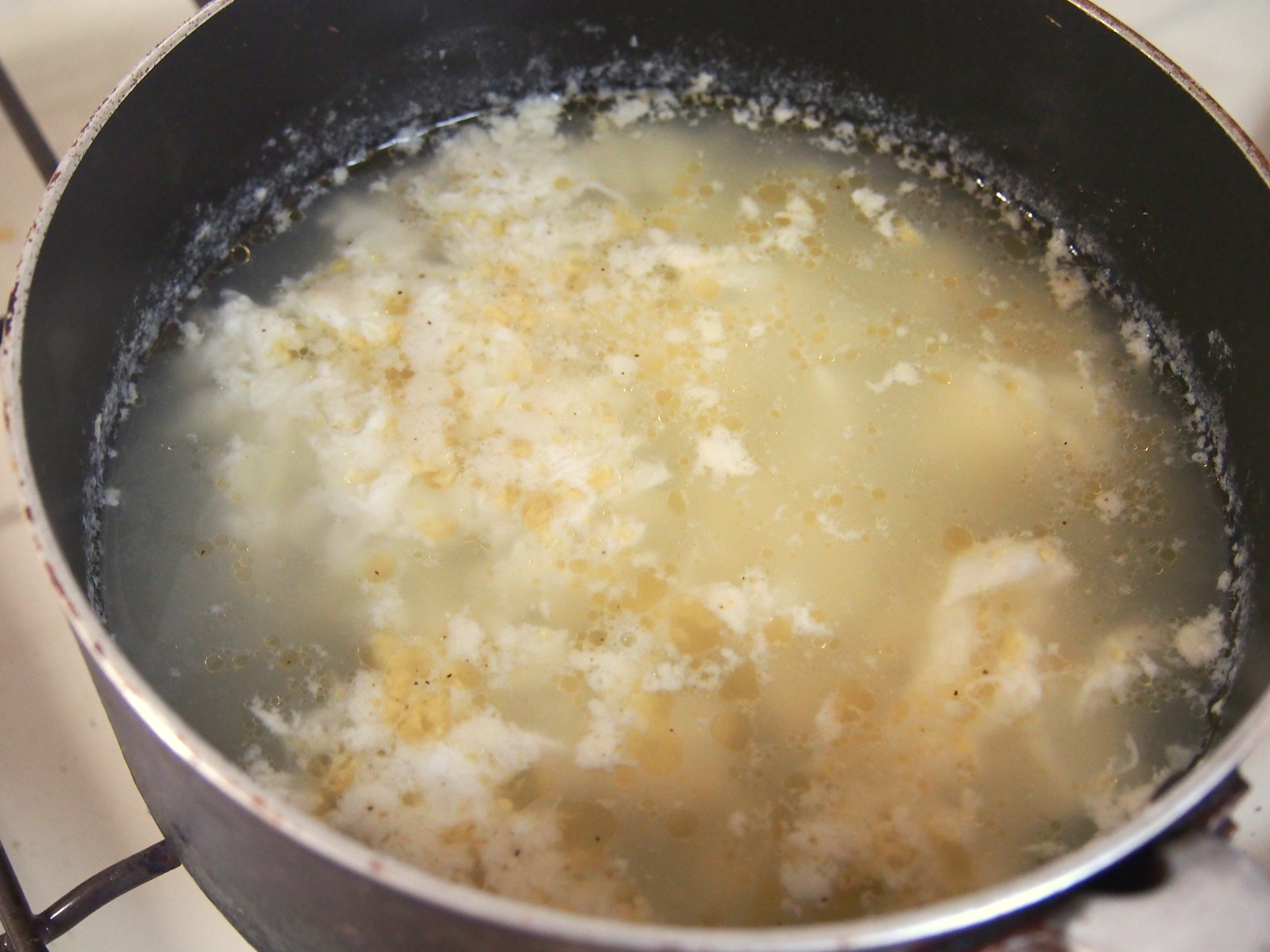初日とは違い、卵黄が沈んで見えなくなっています。もしかしてなくなった!? 恐る恐るスプーンですくい上げると……。