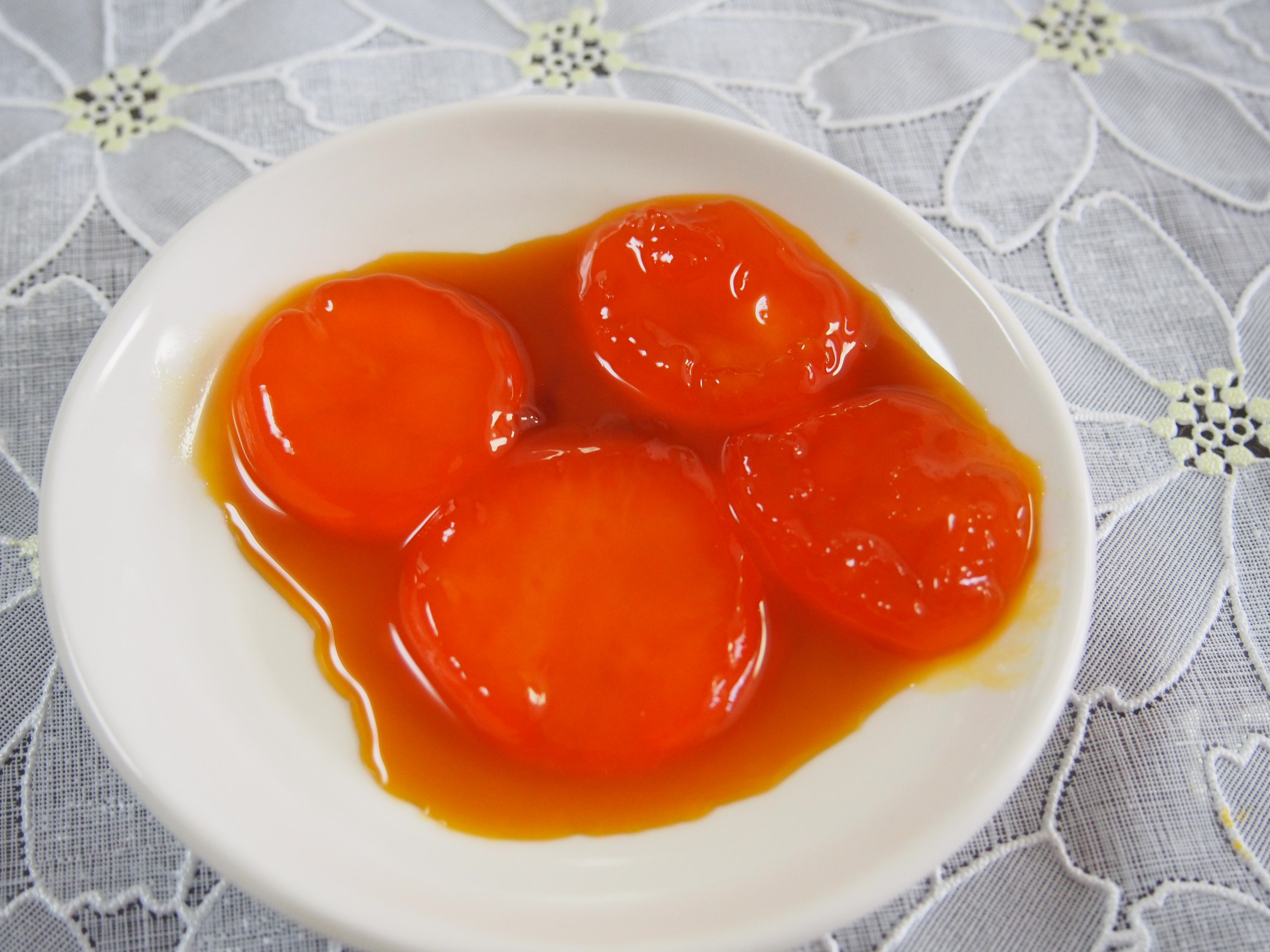 卵黄を漬け込む時間はあくまでもお好みでOKです。ネット上のレシピでは「1~3日」というものが多かったので、今回はしっかっり3日間漬けてみました。ワクワクしながら3日後にお目見えしたのがコチラです!