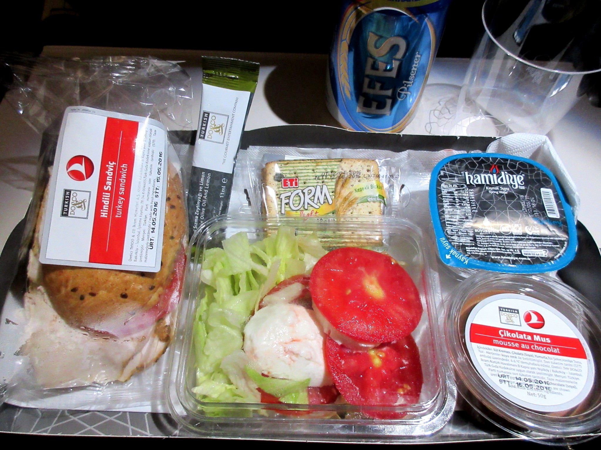 この日は出発が遅れたため、機内食も少し忙しない雰囲気でした。イスタンブールで成田への帰国便に乗り継がねばならなかったので、こちらも気が急きます。イスタンブール空港内を係員の先導で走り、人間はなんとか間に合いました! が、荷物は間に合わず、後日、宅配便で届くはめに。でも、帰国便でよかったです(笑)