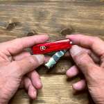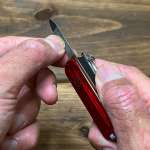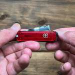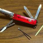 そしてビクトリノックスではおなじみのステンレス製の剣型ナイフ。人差し指の第二関節くらいの長さで、このサイズのナイフとしては必要十分な切れ味。切り損なったパッケージを開けるときに便利でしょうか。