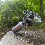 「OUTDOOR HEATER」最大の特徴は、バーナーのそばにある真鍮色のプレートが熱を集め、それをブースターを通してカセットガスに伝えるということ。カセットガスは低温に弱いのですが、この仕組みがあるのでガスの気化が安定するんですね。