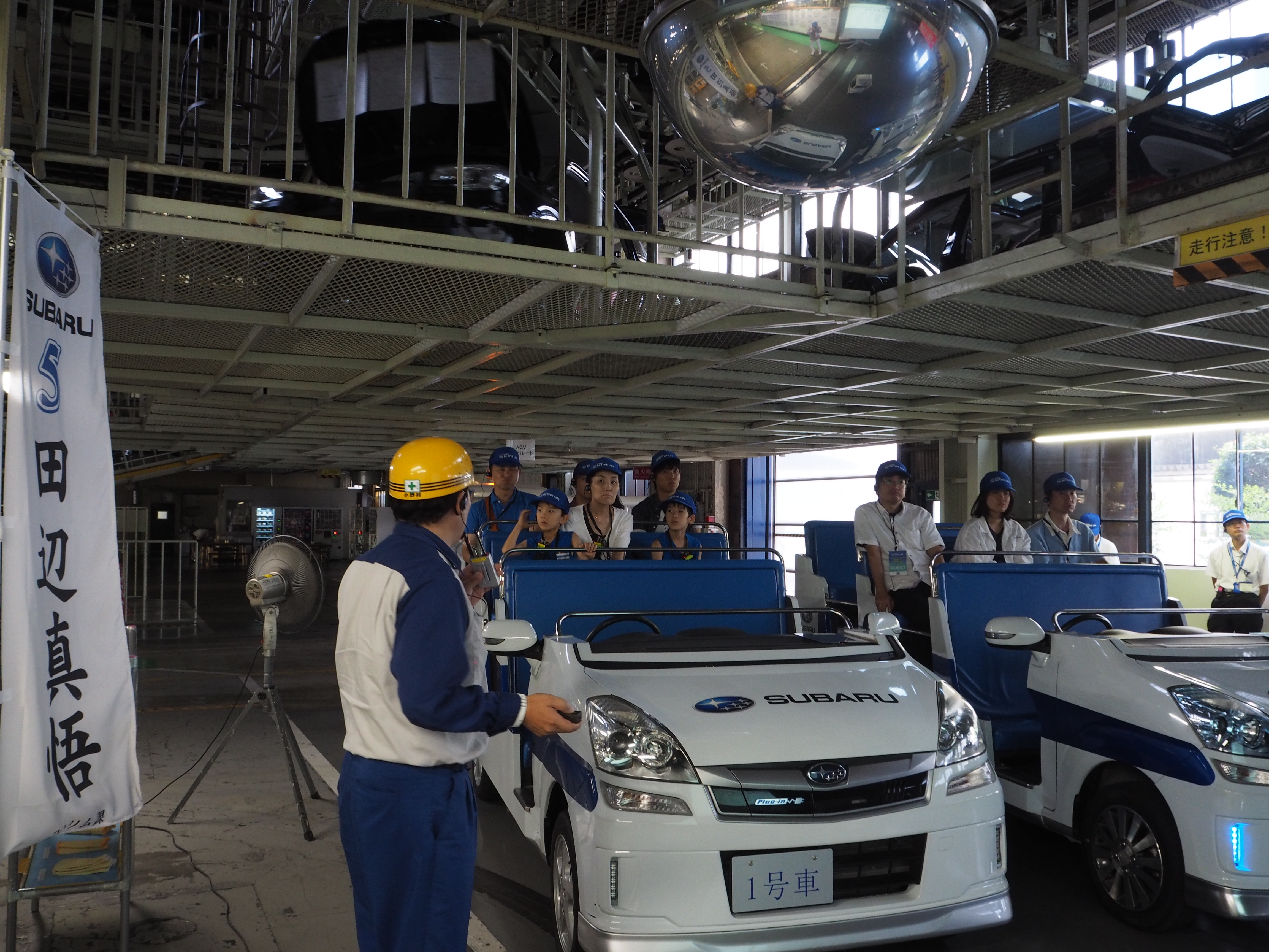 その工場見学で使われている電気自動車が、これ。なんと、富士重工業が2009年から発売していた「プラグイン ステラ」が活躍していたのです。サファリパークを見学する車両と同じようにオープンボディに改装され、見学者を乗せて力強く、そして静かに構内を回るのです。ちなみに当時の市販車の価格は、472万5000円でした。