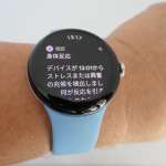 こうした機能は、他のスマートウォッチにもあるのですが、Pixel Watchの画面デザインは友人や知人から「いいね!」と言われることが多いんですよね。腕時計らしいフォルムでありつつ、文字盤がアナログ時計の模倣ではなく、デジタル機器らしいデザインになっているところに好感を持てます。