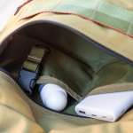 下部のポケットはマチ幅があるためヘッドホンなども収納可能。着脱式キーホルダーやポケットがついてるため、小物を仕分けするのにうってつけです。