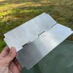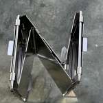 本体を広げていきます。ほかの「ファイヤーピット」シリーズと同じく側面の真ん中あたりで折りたたむ構造ですが、長辺側の板をたたみます。そのままだと互いの板がぶつかってしまいますが、「コンパクト ファイヤーピット」ではほんの少しだけ側面板の長さを変え、互いの板を干渉させずたためるんですね。