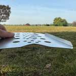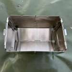 同クラスのチタン製焚き火台ほどではありませんが、片手に載るサイズで十分薄型・コンパクト。それでいて静止耐荷重が約10kgとなかなかのタフさを誇ります。