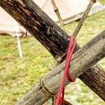 【ステップ2】分かれている部分にもう1本の木を組み合わせて、テントとロープで固定する