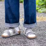 ▼グレーサンダル×白ソックスの組み合わせ