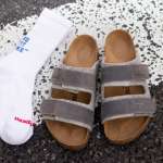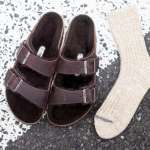 ▲ビルケンシュトックのサンダル「UJI」/2万900円(ビルケンシュトック・ジャパン カスタマーサービス)、ヘルスニットのソックス/1210円(ヘルスニット・ブランズ)