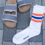 ▲ビルケンシュトックのサンダル「KYOTO」/2万9700円(ビルケンシュトック・ジャパン カスタマーサービス)、VIBSOXのソックス/1760円(アルファ PR)