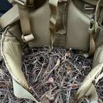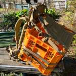 リュックのような袋状の部分はなく、付属する上面カバーで対象物を挟んで使用します。本来は無線機や弾薬、ハードケースなど箱状の物を運ぶことを想定しているのでしょうが、薪など不定形なものを運ぶ際にも適しています。キャンプ場で、駐車場からサイトまで距離があり、高低差があってタイヤの付いたキャリアが使い難い、そんな場所でも役立ちます。薪を積んでみてもまだまだ余裕があるので、テントや寝袋、マット、焚き火台だって背負うことはできそうです。