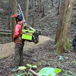 ▲折り畳みコンテナを挟んで山道整備に使ってみた