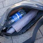気になる収納スペースは、自由度の高いシンプルな設計。折りたたみ傘や500mlのペットボトル、長財布を入れてもまだまだスペースに余裕があります。