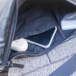 また、小分けに収納できるポケットを配置。スマホ、モバイルバッテリーなどの収納時に重宝します。
