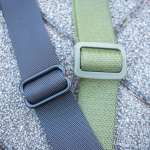 ショルダーに配されたバックルも「レザータッチラウンドバッグ」の方が上品な印象。片手で長さ調整ができるので、ダウンなどボリュームのあるアウターでもサッと背負うことができます。