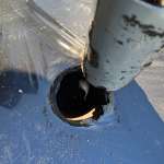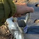 そのマルチにこのアイテムを上からグリグリと押し込んでいきます。目的の深さまで押し込んで引き抜くと、そこにあった土が円筒形の容器に入ります。