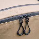 ▲生地は600D高密度ポリエステルで裏と底は防水PVC。止水ファスナーなので水が浸入しづらい
