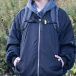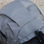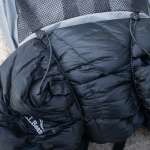 ハイキングなどでギアを外付けするのに便利なボトムのコード。アウターを取り付けてみたところ、ダウンのような軽いものなら問題なく取り付けられました。