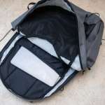 重量が500gで容量25Lのバックパックでは考えられない超軽量モデルなので、PCなどを収納して持ち歩いても軽く感じられます。PCを収納できるメインスペースに加えて、メッシュ付きのフロントポケットやサイドポケット、フロントトップのポケットと収納力も抜群。