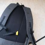 ウエストベルトを取り外せばスッキリとした印象になります。また、ショルダーハーネスのチェック柄が程良いアクセントとしても有用。