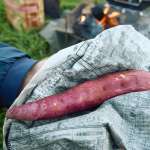 焚き火のそばにいたものの、ほかの作業をしながらだったので風向きが変わっていたのに気づかなかった時間があったためでしょう、時間をかけた割にまだ硬く、ホクホク焼き芋にはほど遠い状態。