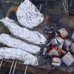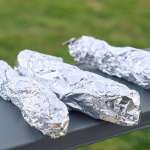 正直、風に左右される焚き火を熱源としても安定した温度で焼けるダッチオーブンやスキレットを使うほうが簡単で確実。けれども焚き火とアルミホイルだけで焼き上げようと思うと、熾きを増やそう・いや散らしたほうがいいなど実験気分で夢中になれます。