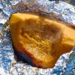 カボチャはいい感じのぽくぽくで種に近い部分はトロトロ。大きいので一部が焦げ、一部は少し硬さが残っていましたが甘みが濃い。バターを一片落とせば塩っぱさとの対比でペロリと食べられます。
