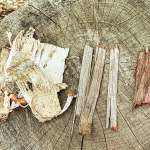 ファイヤースチールや火打ち石での着火をする際には、白樺やファットウッドほど着火しやすくはないため、着火の段階から使用するのであれば、一度炭化させておくのも良いと思います。