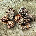 ▲乾燥した松ぼっくりは良い着火材です。特に松の樹脂が含まれている部分は燃えやすいです