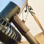 ▲専用タープベルト。ファンに巻き付けるだけの簡単取り付けで、カラビナ用ループも配置