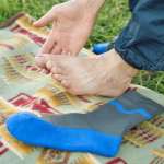 ところが露に濡れた芝を歩くとびっちょびちょ。朝一番に歯磨きをしに洗面所とテントを往復するだけで萎えていたんですが、「ニューポート ウォータープルーフ ソックス クルー」を履いていれば、サンダル履きでも足が濡れません。めっちゃ快適。