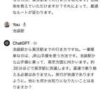まず、スマホで調べ物をしたい情報の代表格は、移動手段ですね。ChatGPTとCopilotに、外出先の池袋から東京駅への行き方を聞いてみました。