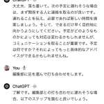続いて、仕事でピンチのシチェーション。「次の予定に遅れそうなんだけど、どうしたらいい?」とChatGPTとCopilotにアドバイスを求めました。