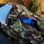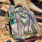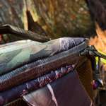 リーフ迷彩のファブリックは撥水加工が施されているので多少の雨でも使えます。雨の日は猟はしないヘタレですが、存外にリュックは汚れるので、軽く洗い流すだけできれいになるのは良いですね。獲物の血液や体液など登山では想定外の汚れ方もするので、撥水加工であることは助かります。