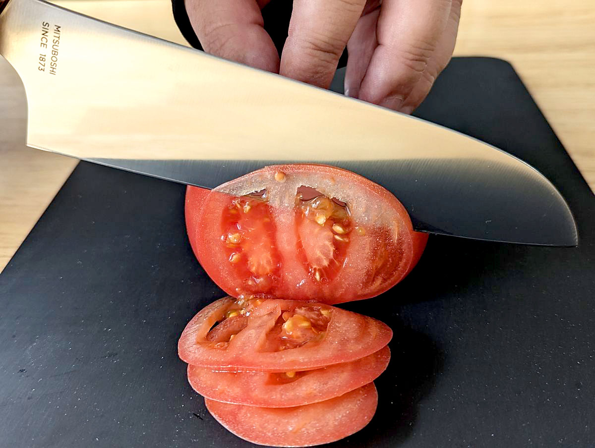 そして1カ月ほど悩みに悩んで選んだのが、日本有数の刃物の産地、岐阜県関市の三星刃物が手掛けるオリジナルブランド“和 NAGOMI”の「三徳包丁」(1万2100円)。ちょいとばかり予算オーバーでしたが、使ってみると、なにこの気持ち良さ!