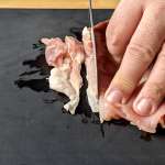▲グリグリ押し付けて無理やり切っていた鶏モモ肉の皮もこのとおり