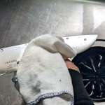 ▲角度を15度程度にして力を入れながらミネの方向に10回ほど動かす。擦れる音がするぐらい強く当てたほうがいいらしい。カーブした先端は弧を描くように。これを両面行う