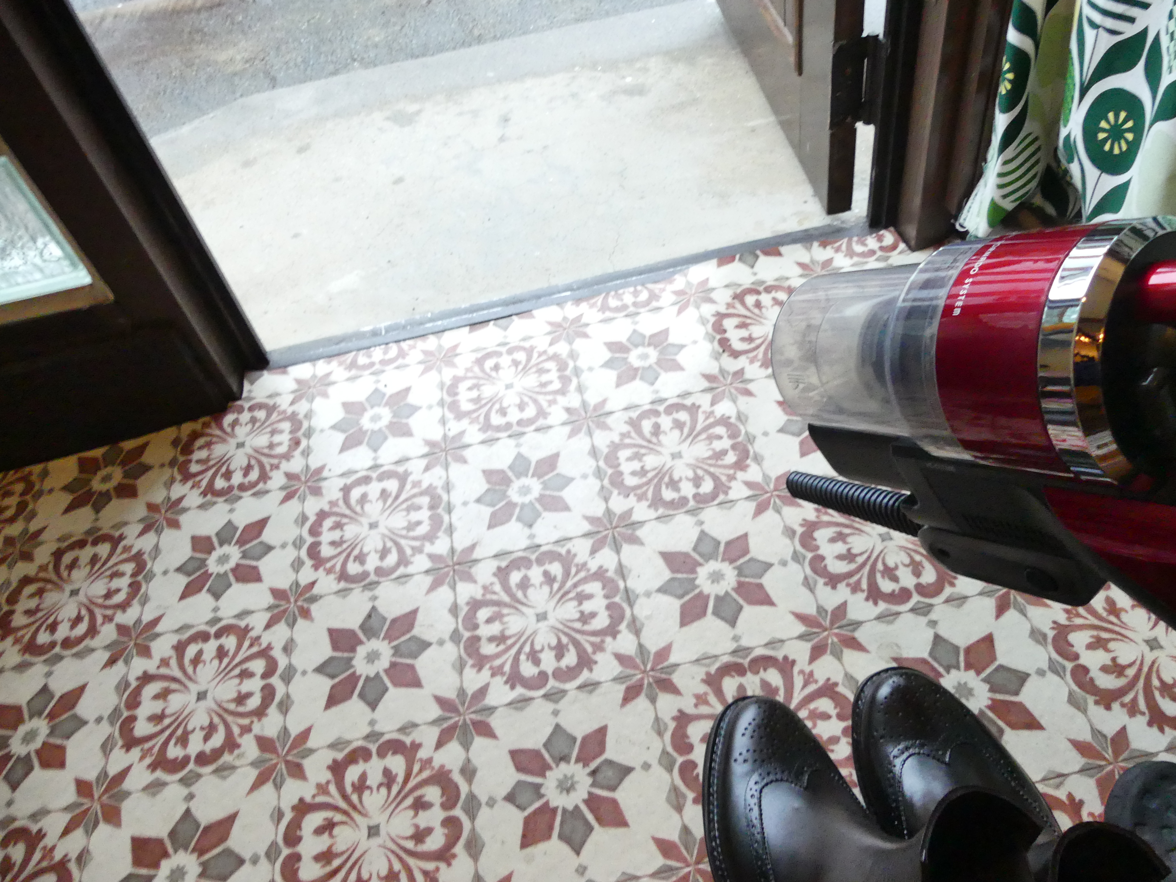 靴についた砂などですぐに汚くなる玄関。ホウキの代わりにエアブローすれば隅までキレイに。ついでに靴の中なども。