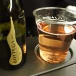 今回は、CAさんのおすすめでそちらをチョイス。果実感溢れる味わいにシュワっと爽やかなワインでゴクゴクいける飲みやすさ。ぜひ同路線搭乗の際にお試しを! ちゃっかりワインの「ボッテガ・ヴィーノ・ディ・ポエーティ プロセッコ」も一緒にいただきました(別の銘柄の場合もあり)。