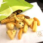 ドリンクとともに配布されたおかきは、折り鶴イラストのパッケージ。亀田製菓製のあられがほどよく入っています。種類もいろいろ、カリカリ食感で飽きずに味わえるんです。