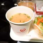 おすすめされたお味噌汁を追加でゴクリ。あったかい汁物があるだけで、機内食のおいしさも倍増するものですよね。